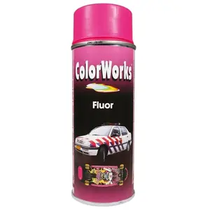 Spuitbus Color Works Fluor. sneldrogende alkydlak. In diverse kleuren.
