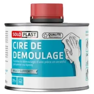 Cire de démoulage Soloplast W2 500ml La cire de démoulage Soloplast W2 500ml est employée en couches minces pour le démoulage de pièces en stratifié polyester ou époxy sur moule en stratifié ou métallique. Conseils : L'application se fait au chiffon, un lustrage est ensuite nécessaire. La conservation du produit en boite d'origine close est d'au moins 6 mois à 20°C. Conserver le produit hors de la portée des enfants, ne pas respirer la vapeur et éviter le contact avec les yeux. Utilisez les produits Soloplast avec précaution. Avant toute utilisation, lisez l'étiquette et les informations concernant le produit. Caractéristiques : Cire de démoulage Soloplast W2 Démoulage de pièces en résine époxy, polyester sur moule en stratifié, silicone, ou métallique Contenance : 500 ml Coloris : incolore Consommation : env. 50 à 60 ml/m² par couche Temps de séchage : environ 10 minutes Réf. 131429 Conditionnement : Une cire de démoulage Soloplast W2 500ml livrée dans son emballage d'origine En-tête / Fabricant=Soloplast;Contenance=0.5 L;Crawler=AI Description Formatting;Titre=Cire de démoulage Soloplast W2 500ml