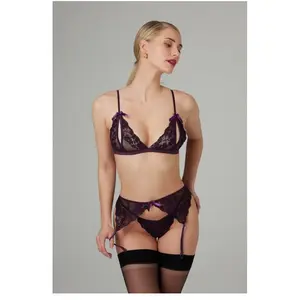 Christine le Duc - 3 Delig Open BH Setje - Lingerie Erotisch - Axelle - Paars