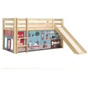 Vipack Pino Lit Compact Avec Toboggan Pin Massif Nature + Rideau En 4 Parties Animalerie