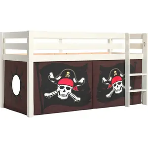 Vipack Pino Lit Sureleve En Pin Massif Avec Sommier Blanc + Rideau En 4 Parties Pirate Des Caraibes