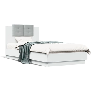 Obtenez une meilleure nuit de sommeil reposante grâce à ce cadre de lit avec tête de lit ! Il est un supplément accueillant à toute chambre à coucher. Matériau durable : le bois d'ingénierie est d'une qualité exceptionnelle avec une surface lisse et présente également résistance, stabilité et résistance à l'humidité.Lattes de contreplaqué : les lattes de contreplaqué assurent une bonne répartition du poids, garantissant que le matelas reste en place à chaque torsion de votre corps pendant le sommeil.Excellent soutien : l'oreiller de tête de lit est rembourré avec de la mousse pour un confort ultra doux et optimal vous offre un excellent soutien du dos lorsque vous êtes assis dans votre lit pour lire ou regarder la télévision. Bon à savoir :Un matelas n'est pas inclus avec ce lit. Nous offrons une sélection variée de matelas. Vous pouvez consulter notre boutique pour trouver un matelas assorti. Couleur du lit : blanc Couleur du coussin de tête : gris clair Matériau du cadre de lit : bois d’ingénierie, tissu (100 % polyester) Matériau des lattes : contreplaqué Matériau de rembourrage du coussin de tête : mousse Dimensions totales : 193 x 138 x 84 cm (L x l x H) Dimensions du matelas correspondant : 135 x 190 cm (l x L) (matelas non inclus) Dimension du coussin de tête : 47 x 32 cm (L x l) Assemblage requis : oui