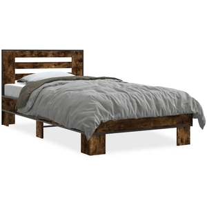 vidaXL Cadre de lit chêne fumé 135x190 cm bois d'ingénierie et métal