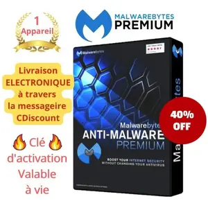 Obtenez une clé de licence authentique et légale à vie pour Malwarebytes Premium activable sur 1 appareil Windows. Livraison immédiate via Cdiscount. Protégez vos appareils avec une technologie innovante qui détecte et supprime les malwares rapidement tout en préservant vos performances.