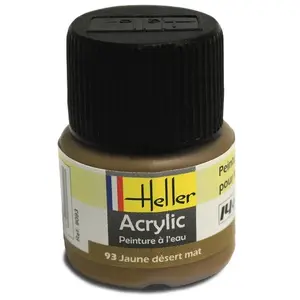 93 - Jaune désert mat - Peinture acrylique à l'eau pour maquettes.Contenance : 12 ml. - En-tête / Fabricant=Heller;Type de Produit=Peinture modélisme;Titre=93 - Jaune désert mat;Tranche de poids=100 à 250 g