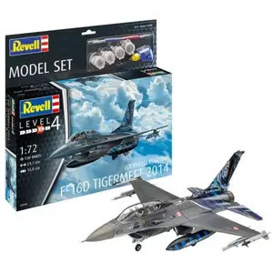 Maquette d'avion de chasse à monter de la marque Revell. Échelle : 1/72. Age minimum : 12 ans Dimensions et poids / Poids=484;En-tête / Fabricant=Revell;Type de Produit=Maquette avion;Tranche de poids=250 à 500 g;Titre=Maquettes Model Set Model Set Lockheed Martin F-16D Tigermeet 2014