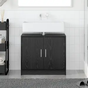 vidaXL - Badkamerkast - Zwart - Eiken - 63 - x - 29 - x - 55 - cm - Bewerkt - hout