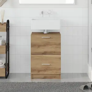 Meuble sous évier - vidaXL - Chêne Artisanal - 40x37x59 cm - Bois dingénierie - 2 tiroirs - Finition texturée