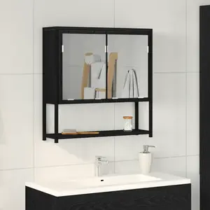 vidaXL - Spiegelkast - met - plank - Zwart - Eiken - 60 - x - 16 - x - 60 - cm - Bewerkt - hout