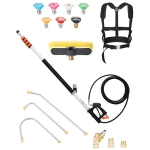 VEVOR Lance Télescopique pour Nettoyeur Haute Pression 6358 mm, Baguette Pulvérisation Télescopique 4000 psi avec Rallonges, Tête Brosse, Coupleur Pivotant, 7 Buses, Harnais de Support, pour Gouttière
