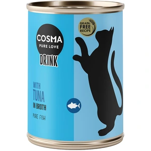 La nouvelle friandise sous forme de boisson Cosma Drink fournira à votre chat un délicieux apport en liquide entre les repas. Chaque saveur est préparée selon les normes de qualité conformes à la marque Cosma à base de viande ou de poisson servis en bouillon. Votre petit félin aura le choix entre du délicieux blanc de poulet, du thon, du poulet et du foie de poulet ou du thon et des crevettes pour varier les plaisirs entre les repas. Les boîtes Cosma Drink sont exclusivement formulées à base d'ingrédients naturels, et sont garanties sans céréales ni additifs artificiels. Elles offriront à votre animal une expérience culinaire hors du commun. Conseil : veillez à bien secouer la boîte avant ouverture. Caractéristiques des boîtes Cosma Drink 6 x 100 g pour chat : friandise à boire pour chat qualité Cosma pour faire plaisir à son chat entre les repas ingrédients naturels et de grande qualité sans additifs artificiels sans céréales boîtes pratiques de 100 g : pour servir rapidement et facilement. Les boîtes Cosma Snack sont disponibles en 4 saveurs : blanc de poulet thon poulet foie de poulet thon crevettes Le lot mixte contient les saveurs suivantes : 2 x blanc de poulet 2 x thon 1 x poulet foie de poulet 1 x thon crevettes Découvrez dès à présent les nouvelles friandises à boire et faites plaisir à votre chat avec beaucoup d'amour et Cosma !