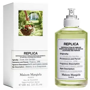 From the Garden vous invite à revivre un après-midi ensoleillé passé à jardiner. Puglia, 1998 – Le plaisir de jardiner les mains dans la terre, de cueillir des tomates à la main accompagné du bourdonnement des abeilles dans l'air. Un Parfum Hespéridé Boisée créé par les célèbres parfumeurs Sébastien & Olivier Cresp. La sensation de cueillir des tomates à la main recréé par l'accord Feuilles de Tomates & l'essence de Mandarine Verte La sensation de jardiner les mains dans la terre grâce à l'essence de Géranium & le Patchouli Le flacon semble échappé d'un rayon d'apothicaire et arbore sur sa devanture la même étiquette en tissu que les pièces de la Collection Couture REPLICA signée Maison Margiela. La Collection de Parfums REPLICA évoque instantanément des images, des impressions, des émotions positives qui font écho à notre histoire personnelle. Maison Margiela s'engage pour la durabilité : - Désormais, tous les flacons REPLICA 100 ml et 30 ml disposent d'un capot amovible et contiennent 15% de verre recyclé (équivalent à une réduction de 55 tonnes de verre par an). - De plus, le flacon REPLICA 100 ml utilise 17% de verre en moins par rapport à 2019 (une réduction supplémentaire de la consommation de verre d'au moins 45 tonnes par an). Famille olfactive : Boisé Hespéridé Pyramide olfactive : Notes de tête : Mandarine Verte, Essence de Pamplemousse, Accord Cassis Notes de coeur : Accord Feuille de Tomate, Cœur de Géranium Bourbon, Accord Rose de Madagascar Notes de fond : Patchouli d'Indonésie, Mousse Cristal, Muscs Blancs