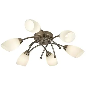 Searchlight - Opera - Plafonnier affleurant à 6 bras à 6 branches en laiton antique et verre opale, G9