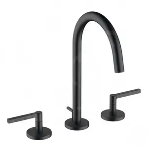Kludi, Robinetterie de salle de bains, Mélangeur lavabo NOVA FONTE PURISTIC 3 trous, DN 15 noir mat