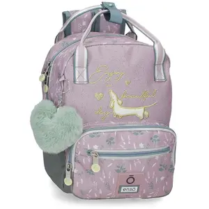 Une belle journée peut être n´importe quel jour, mais si c´est avec votre animal de compagnie et entouré de nature et de campagne, c´est encore mieux.Pour aller à l´école, partir en randonnée ou voyager avec l´impression de profiter d´une journée en pleine nature, la collection Beautiful Day d´Enso, déclinée en violet et vert pastel, avec son image de chien aux accents dorés et la plupart des pièces ornées d´un pompon vert en forme de cœur, est idéale au quotidien.Nous proposons différentes tailles de sacs à dos, sacs à bandoulière, valises et trousses de toilette.Vous pourrez ainsi choisir celui qui vous plaît le plus ou celui qui correspond le mieux à vos besoins.Avec cette nouvelle collection, vous trouverez tout ce dont vous avez besoin et ce que vous recherchez, nous savons que vous l´avez autant aimée que nous.N´attendez plus et foncez !.- Sac à dos de 23 cm x 28 cm x 10 cm, en polyester.- Compartiment principal aux dimensions idéales pour ranger vos essentiels scolaires ou vos effets personnels en voyage.- Deux poches avant pour un accès facile aux petits objets.- Des bretelles réglables et des poignées clipsables vous permettent de le porter comme un sac à dos ou un sac à main.- Un porte-clés pompon en forme de cœur complète le design.