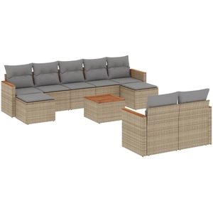 | Nom du produit | vidaXL Salon de jardin avec coussins 9 pcs beige résine tressée |