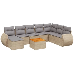 vidaXL - 9-delige - Loungeset - met - kussens - poly - rattan - beige