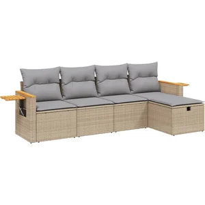 vidaXL - 5-delige - Loungeset - met - kussens - poly - rattan - gemengd - beige
