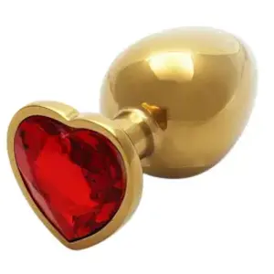 Shots - Ouch! OU807GLD - Heart Gem Butt Plug - Large - Gold / Ruby Red