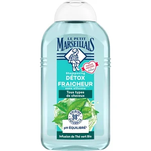 Vos cheveux ont tendance à regraisser un peu trop vite à votre goût ? Alors votre cuir chevelu a très certainement besoin d’un grand bol d’air ! Pour apporter de la pureté à votre cuir chevelu, Le Petit Marseillais est allé puiser au cœur de la nature des ingrédients reconnus pour leur vertu purifiante. Découvrez notre shampooing détox fraicheur. Sa recette authentique contient de l’infusion de Thé vert BIO, réputée pour ses bienfaits revitalisants. De quoi purifier vos cheveux dès la racine et leur offrir un nouveau souffle ! Efficacité prouvée : Élimine 98% des particules de pollution atmosphérique*. Equilibré, libéré des impuretés et des particules polluantes* votre cuir chevelu respire. Vos cheveux sont frais et légers, ils restent propres plus longtemps. *Test instrumental shampooing + après-shampooing Le Petit MarseillaisA -98% d'ingrédients d'origine naturelle -SANS SILICONE pour un toucher naturel -Efficacité prouvée : Élimine 98% des particules de pollution atmosphérique (Test instrumental shampooing + après-shampooing Le Petit Marseillais) -Flacon recyclable -Testé sous contrôle dermatologique