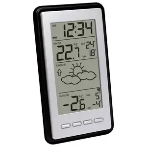 FONCTIONNALITÉS:DCF - 77 horloge radiocommandée avec option de réglage manuelAffichage 24 hTempérature intérieure et extérieure en ° C ou ° FEnregistrement MIN / MAX pour la température intérieure et extérieureAlarme avec répétitionPrévisions météo et tendances - s'habille en fonction des conditions météorologiquesTechnologie IT + - transmission de données toutes les 4 secondesIndicateur de batterie faibleMontage mural ou sur table