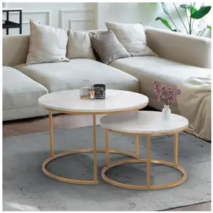 Meublez et décorez votre séjour ou salon avec goût grâce à ces jolies tables basses gigognes imbricables. Laissez-vous séduire par ce lot de 2 tables de salon rondes effet marbre et pied doré à un prix tout doux ! Totalement dans lair du temps elles viendront apporter une touche de modernité à votre intérieur.