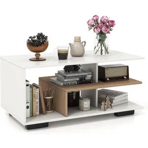 Table Basse À 3 Niveaux Avec Rangement Costway, Etagère Centrale En `L...