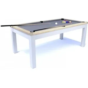 Table à manger convertible en Billard 7FT - Meyer - Blanc et Hêtre - T...