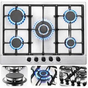 Plaque de Cuisson Gaz 5 Feuxs Plaque Gaz Inox 68 cmCuisinière à Gazs 5 Brûleurs Encastrable10480WSécurité Thermocouple