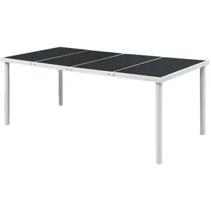 Cette table de salle à manger, conçue avec des lignes épurées et simples, est un excellent choix pour votre jardin, votre terrasse et pour tout autre espace extérieur. Son élégance simple rendra le dîner quotidien spécial. Cette table de salle à manger avec dessus en verre dispose de pieds en acier enduit de poudre, ce qui donne à la table une stabilité optimale et apportera certainement des années de service. Elle est également très facile à nettoyer avec un chiffon humide seulement. Couleur : Noir et grisMatériau : Dessus en verre + pieds en acier enduit de poudreDimensions : 190 x 90 x 74 cm (L x l x H) En-tête / Fabricant=vidaXL;Perception sensorielle / Coloris (générique)=Gris;Type de Produit=Table de jardin;Ressum=2;Titre=vidaXL Table de jardin 190x90x74 cm Noir Acier;Matière dominante=Acier