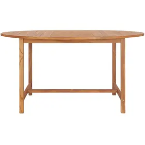 Cette table de salle à manger en bois solide de teck avec une finition à base d'eau ajoutera une touche de charme naturel à votre cuisine, jardin ou terrasse. Fabriquée en bois dur de teck extrêmement durable, cette pièce de meuble en teck a été chevronnée, séchée au four puis finement poncée pour lui donner un aspect très lisse. Le bois de teck est connu pour sa résistance exceptionnelle aux intempéries, ce qui le rend bien plus adapté aux meubles de jardin que tout autre type de bois. Le bois de teck est le choix idéal si vous souhaitez acheter une pièce de meubles de jardin durable. Une belle finition à base d'eau est appliquée pour donner au bois une couleur chaude. Grâce au dessus de table extra épais (2,2 cm) et aux grands pieds (4x4 cm), cette table en bois solide est très durable et peut accueillir confortablement vos invités. Avec son aspect classique, vous pouvez placer cette pièce partout autour de votre maison - à l'intérieur ou à l'extérieur ! Notre table est facile à assembler. Matériau : bois dur de teck finement poncé avec finition à base d'eau Dimensions : 150 x 76 cm (Diamètre x H) Distance entre les jambes : 101 cm Épaisseur du dessus de table : 2,2 cm Diamètre du trou de parasol : 5 cm Avec design de lattes en 4 directions Produit convient à l'usage intérieur et extérieur Résistance à l'eau et aux intempéries L'assemblage est requis