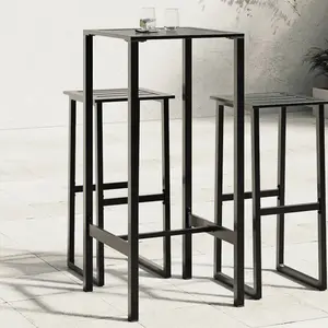 Cette table de bar avec un look élégant est un supplément frappant à votre espace de vie actuel, à l'extérieur ainsi qu'à l'intérieur. Acier enduit de poudre : cette table de bar est fabriquée en acier enduit de poudre, un matériau exceptionnellement dur et solide. Elle offre robustesse et stabilité. Le revêtement en poudre de la surface de l'acier crée une couche protectrice contre la rouille, la corrosion et l'usure.Dessus à lattes : le dessus en acier à lattes est idéal pour placer des boissons, de la nourriture, etc.Multifonctionnelle : cette table de bar multifonctionnelle présente une forme parfaite pour s'adapter à n'importe quel environnement de votre maison. Elle peut être utilisée dans votre cuisine, salle à manger, salon, etc. Couleur : noirMatériau : acier enduit de poudreDimensions : 50 x 50 x 110 cm (L x l x H)Assemblage requis : oui En-tête / Fabricant=vidaXL;Matière dominante=Acier;Type de Produit=Table de jardin;Titre=vidaXL Table de bar noir 50x50x110 cm acier enduit de poudre